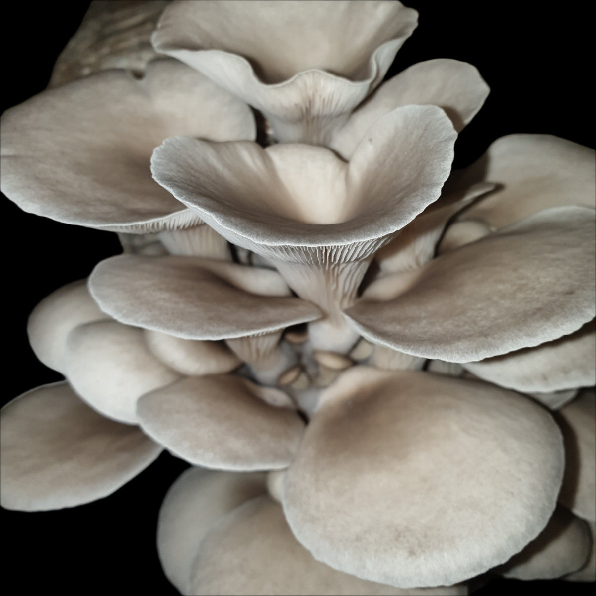 Qualities: Rapidly growing species, very high yield, excellent quality of the fruit bodies. Florida Oyster Characteristics: , funnel-shaped fruit bodies with elongated stems. Their colour varies, with increasing light intensity and temperature, from light-beige to greyish blue They are very tasty and preserve well.